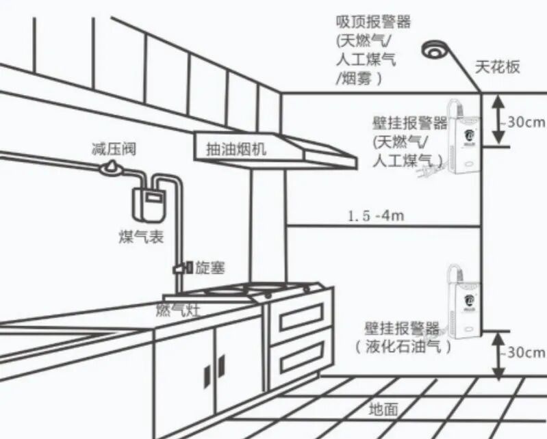 三、居民如何解决相关难题? 对于有安装燃气管道需求的高层建筑用户,可自行向管道天然气特许经营企业申请报装,也可以选择使用电炊具。安装燃气泄漏报警器是重要补充,家用设备仅需百元左右,却能实现24小时监测,泄漏时10秒内启动声光报警并远程通知。记住安装口诀:液化气报警器距地面0.3米,天然气报警器距天花板0.3米,远离油烟和高温区域。