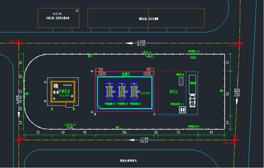 本工程为西咸15GW单晶电池工厂及相关配套建设项目的甲醇站,建设规模为3台50m³的储罐和3m³的水箱,以及配套的设施,包括输送泵和混合器。甲醇站工艺流程主要包括甲醇卸车、甲醇储存及甲醇稀释外输等过程。